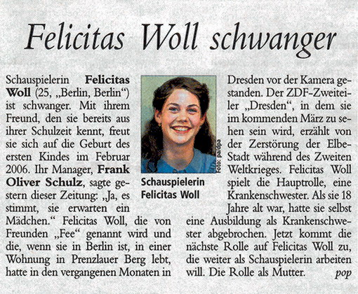 2005, November 10.: Berliner Morgenpost"Felicitas Woll schwanger" |